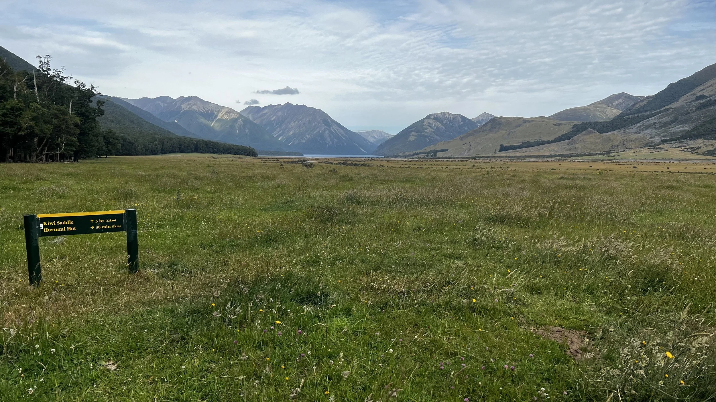 We wanted to be ready to go at 9am (about 30mins drive from Richmond to the car park) but the bed was too cosy and the wine the evening before too good. I’d an easy walk though and halfway back to Hackett we get to a junction that shows us to g directly walk to Browning, the next hut going northbound.