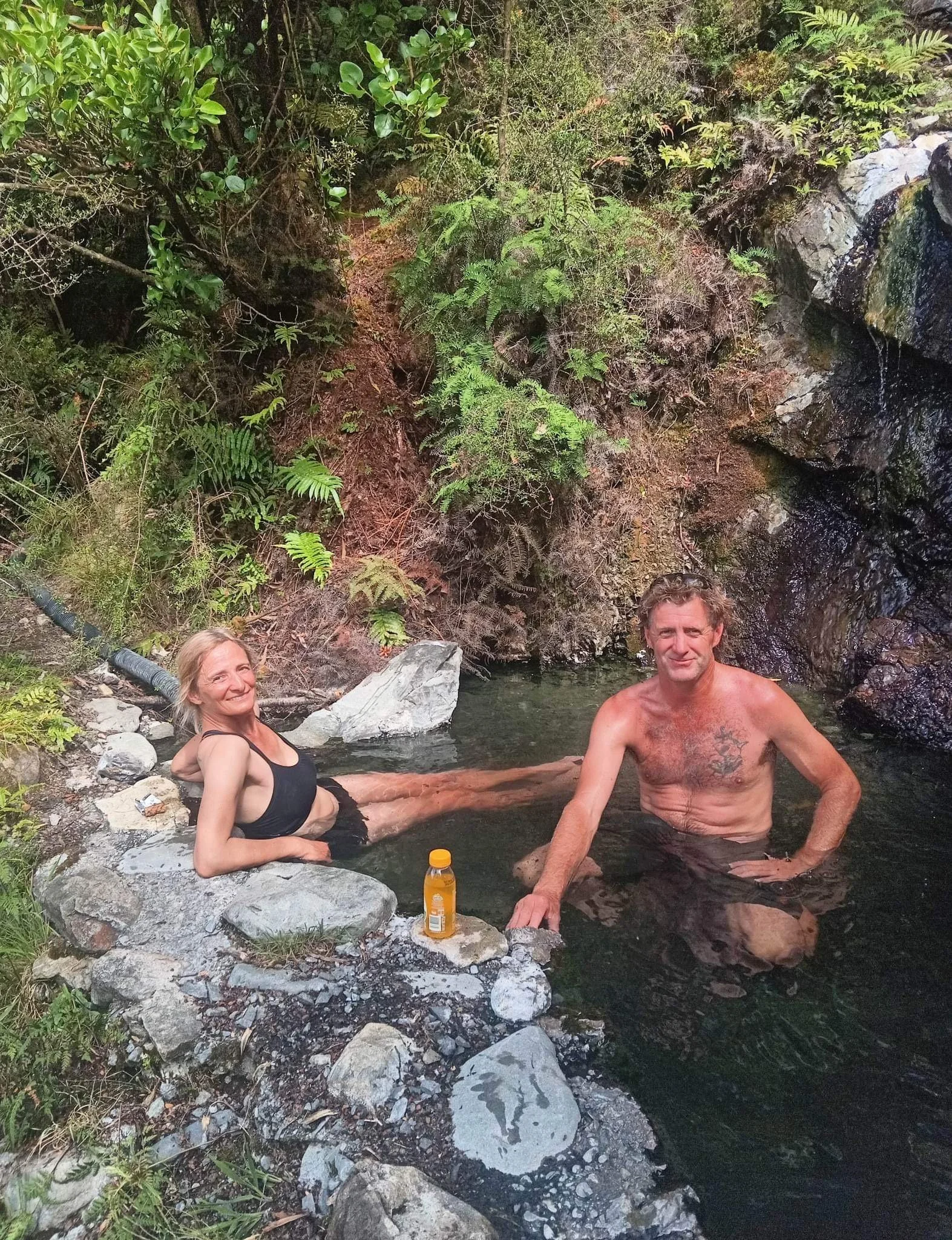 We pass quite a few southbound hikers and several huts before entering into a forest with several (unnecessary) ups and downs and I wonder why we did not just continue walking by the river when suddenly it smells strange …. and there we are at some natural hot pools several hikers have told us about.