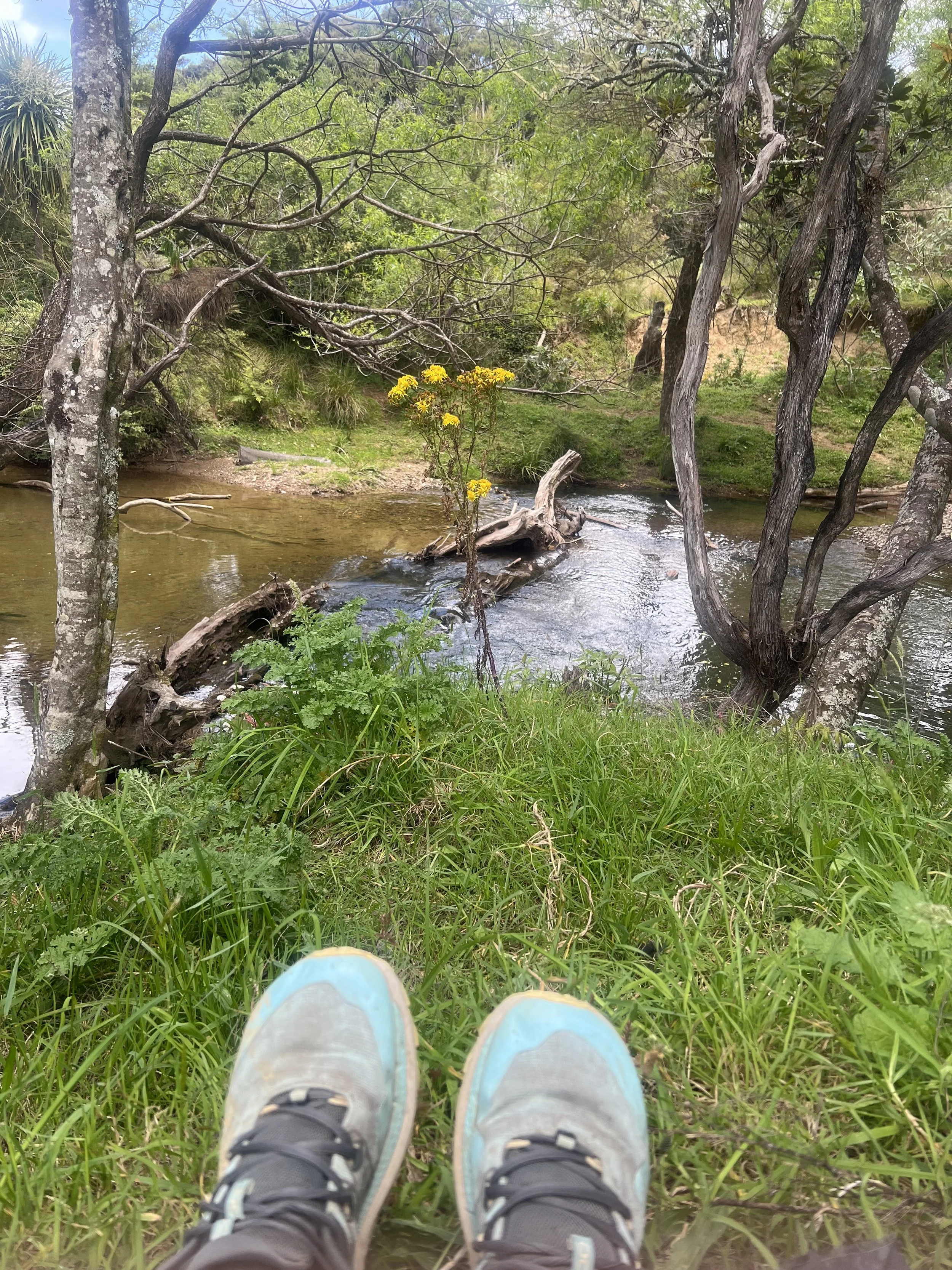 Once again the day starts with happy birds greeting the day, however, my mind is still with that possum I heard somewhere outside last night. Alarmed by its weird sound, I peeped out of my tent but couldn’t see anything. Probably still up in the trees. Couldn’t be bothered to get out of my cosy sleeping bag. It’s a late start today and after 6 km, we get to “The Farm” a nice place for hikers to pitch the a tent. We meet Rene while who is cooling his feet in a big bucket. He will be having a rest day waiting for his trial family who is a day behind. Most of my own trail family is probably 10 km ahead.