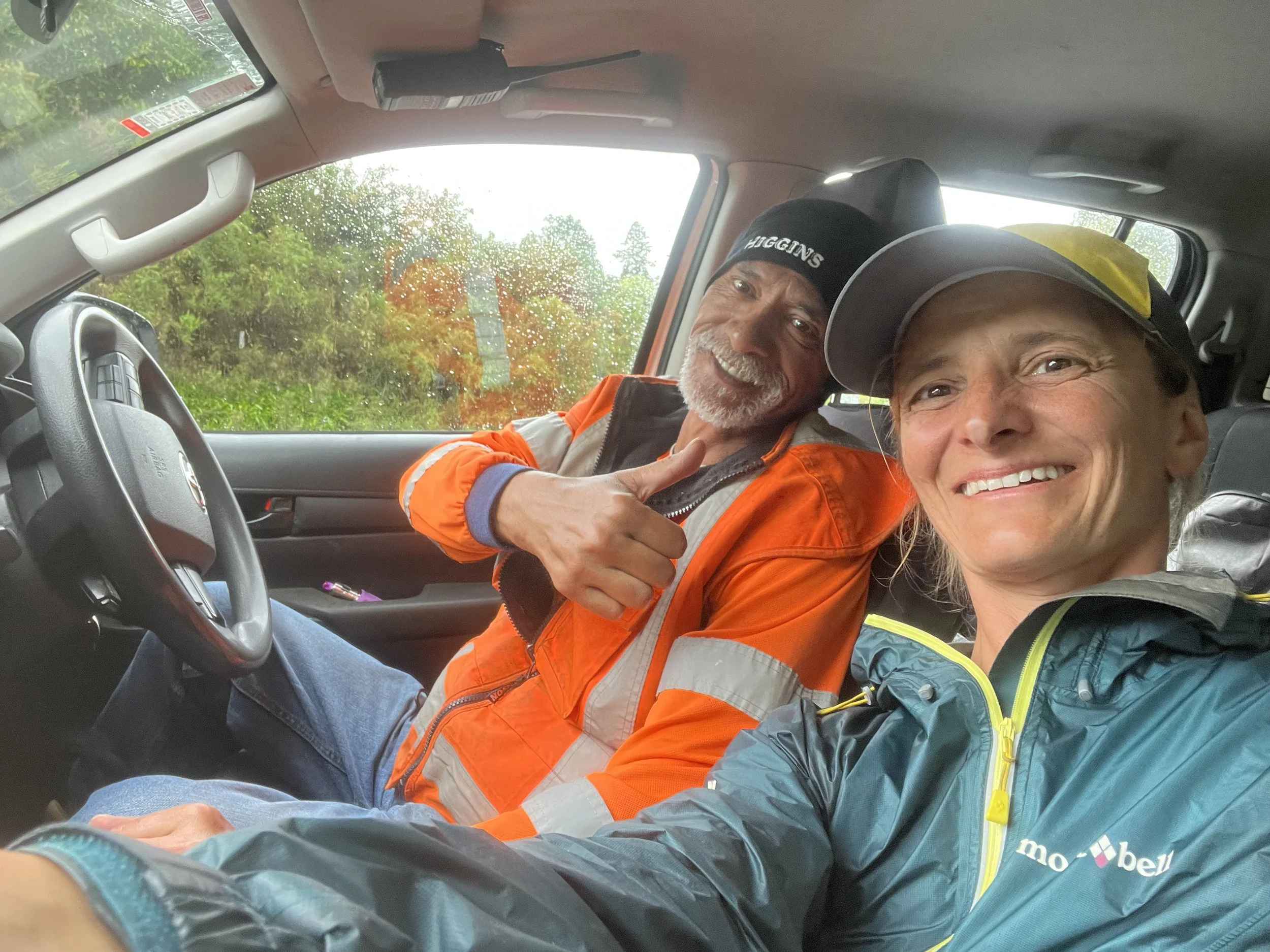 Once I leave Drury, one of the next towns, the rain picks up again, not much of an issue, but after roughly one and a half hours, it turns out that the road is blocked. Why was it not indicated on the map? I talk to the construction people who tell me that there is no way of passing by but they are very friendly and propose that they take me to the other end of the road. It is so cozy with the heating on in that car that I only realize how cold I am once I have to get out again.
