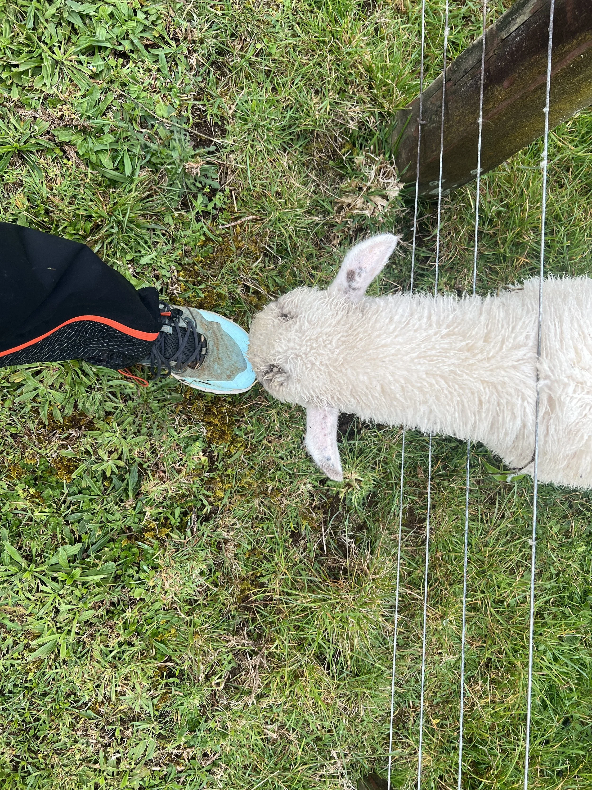 Unspectacular day today: walking along the river in the morning and mostly on grassy stop banks in the afternoon. I am trying to entertain myself talking to cows and sheep. Also becoming an expert in “tackling” (rolling under) electric fences that separate the different paddocks the trail is crossing.