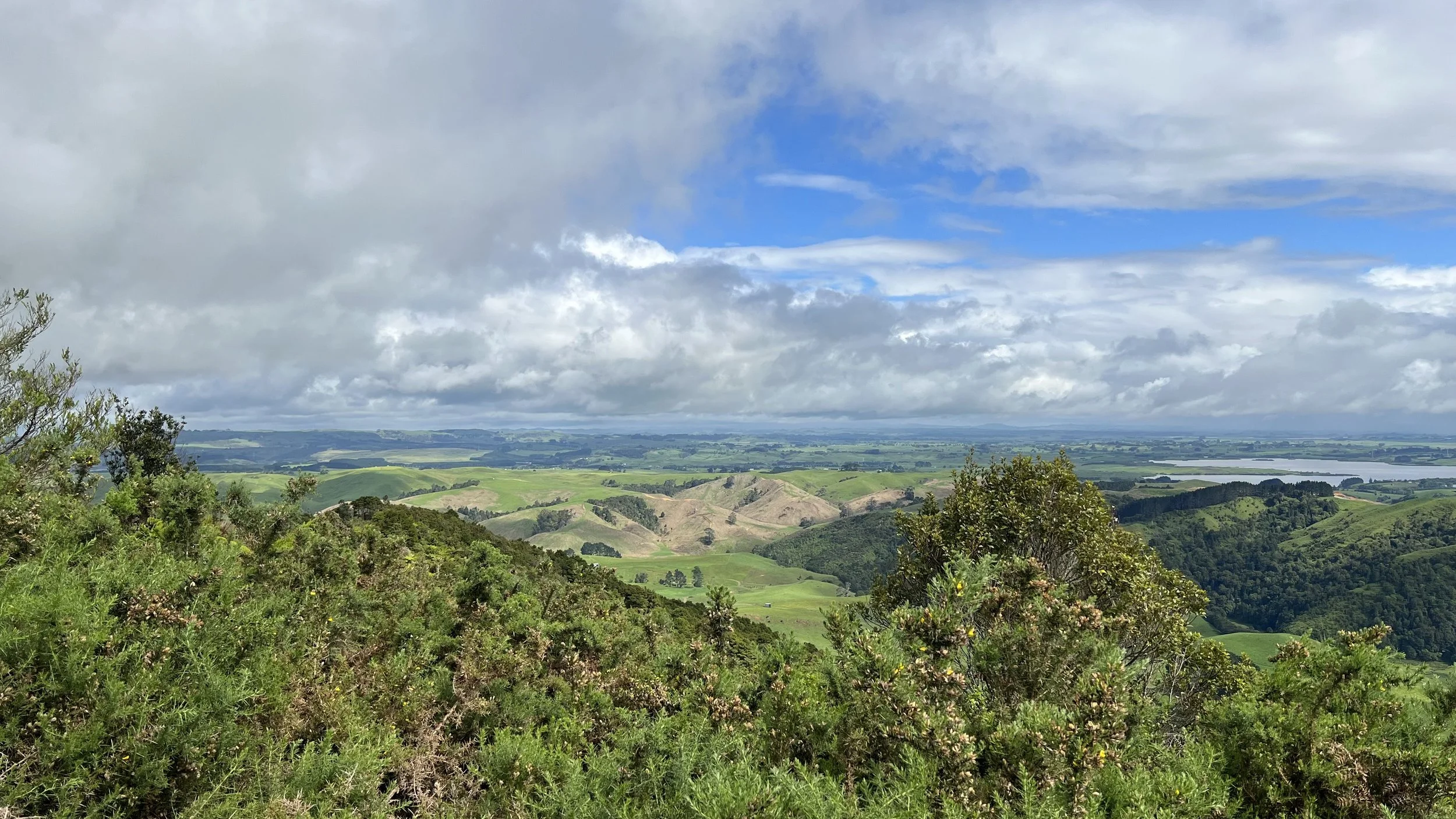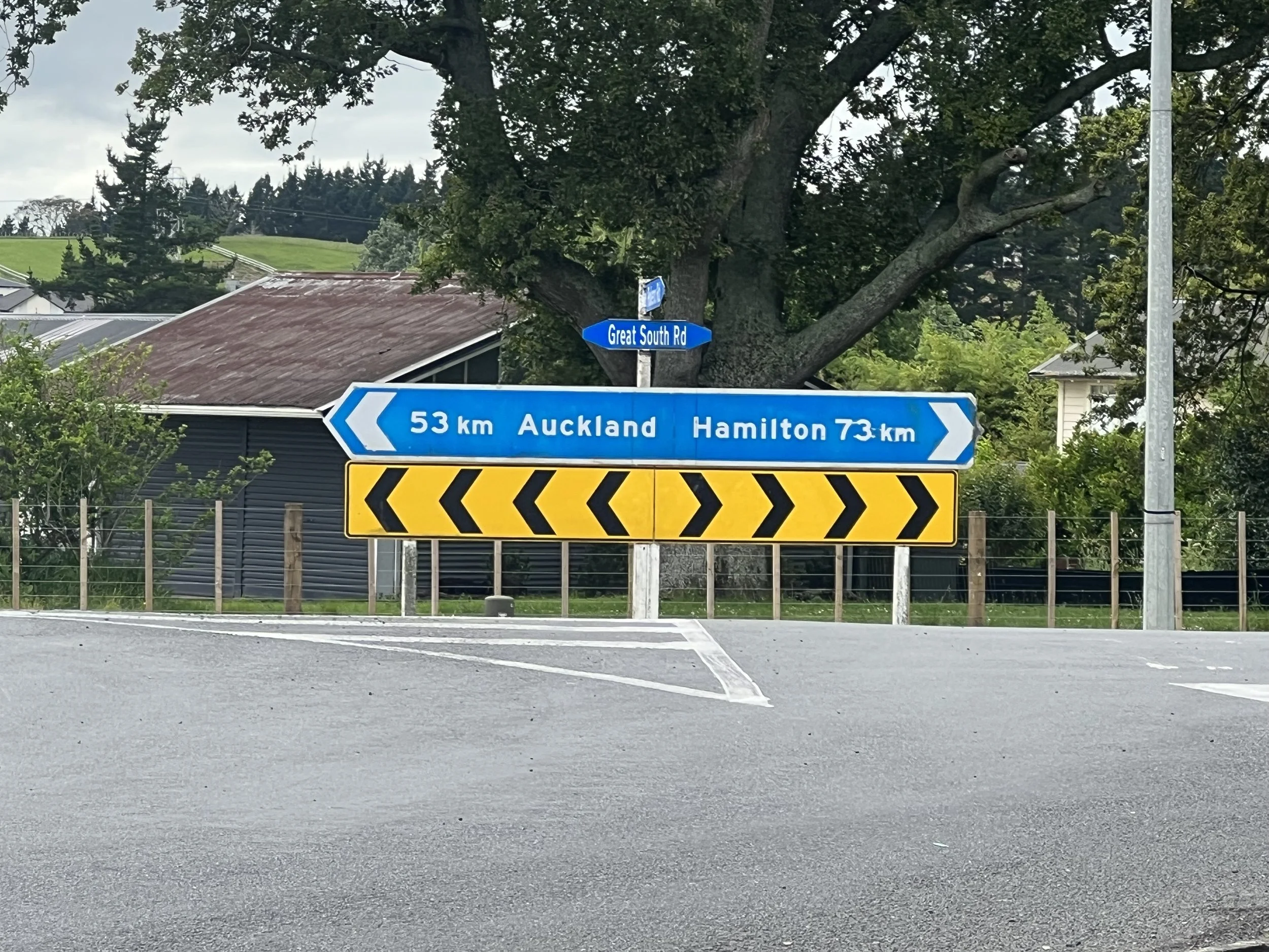 I have an early start today at 6:45 in order to get some miles in before the rain kicks in again. Once I get to Pokeno, the next little village, I walk through some residential area and a nice walkway along a little creek until I get to the café for breakfast. I enjoy a real good flat white together with a smashed apple danish danish I got from the supermarket yesterday. Yum! Once I start walking again, it’s only 10 AM. Still a full day ahead and already 8 km done. Love it!