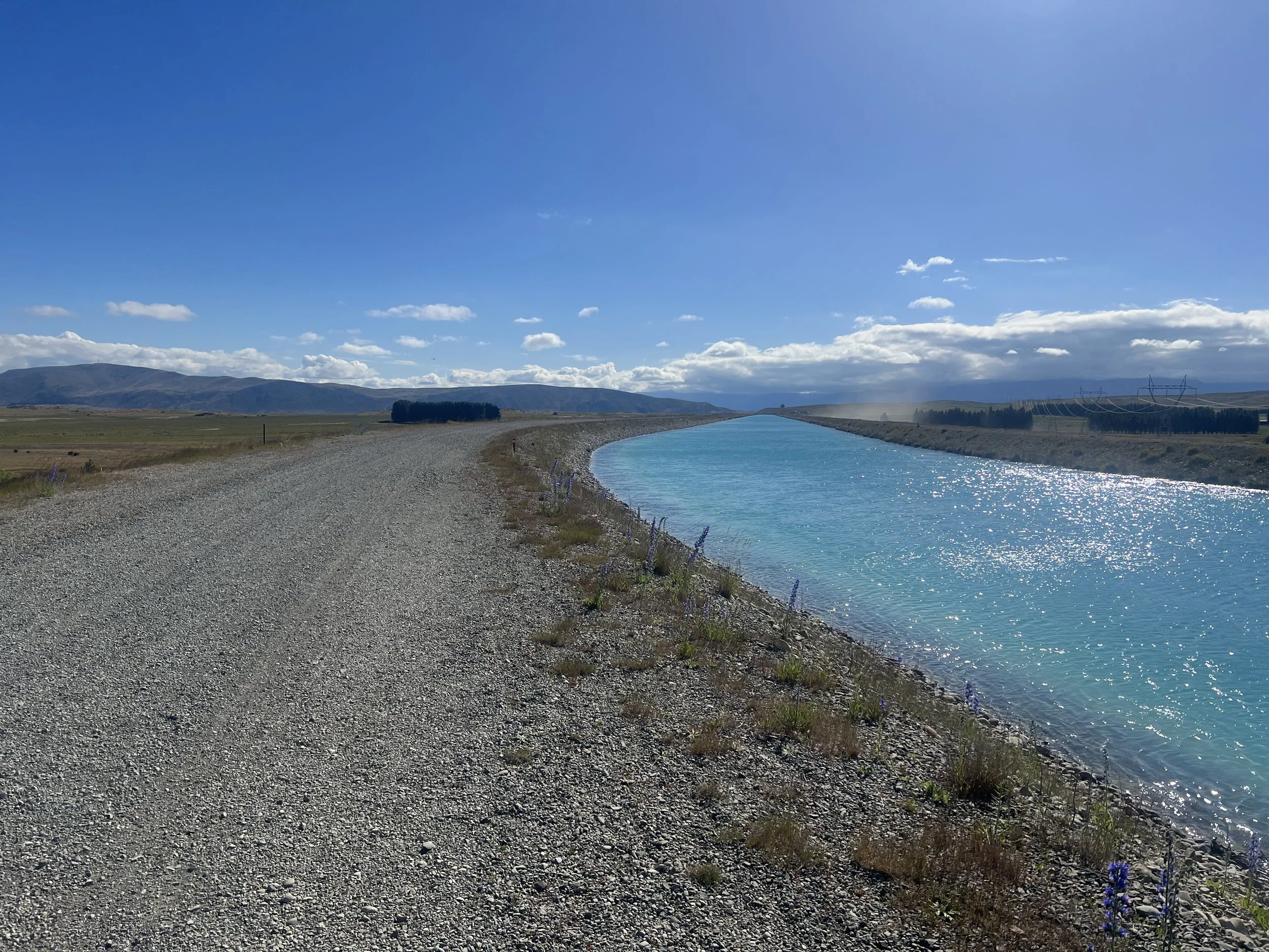 The walk of the day is a longer stretch along the lake, followed by an eternally long and boring walk along the Tekapo canal. To make it even worse the wind picks up in the afternoon, full on head wind.